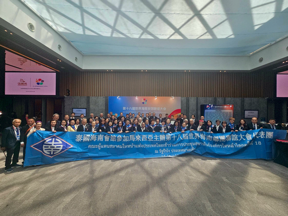 เมื่อวันเสาร์ที่ 15 พฤศจิกายน 2568 (ช่วงเช้า) คุณวรพจน์ เพียรอภิธรรม นายกสมาคมใหหนำแห่งประเทศไทย นำคณะผู้แทนสมาคมใหหนำฯ จำนวน 190 ท่าน เข้าร่วมพิธีเปิดการประชุมสมาพันธ์องค์กรไหหลำโลก ครั้งที่ 18 ณ ศูนย์ประชุมนานาชาติ SETIA SPICE PENANG รัฐปีนัง ประเ