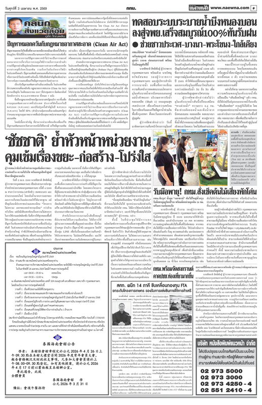 หน้าหนังสือพิมพ์แจ้งการประชุมใหญ่สามัญประจำปี 2569