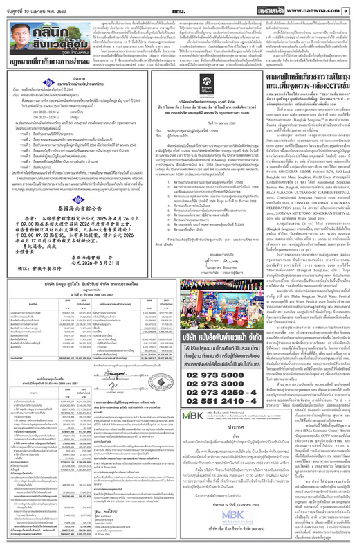 หน้าหนังสือพิมพ์แจ้งการประชุมใหญ่สามัญประจำปี 2569